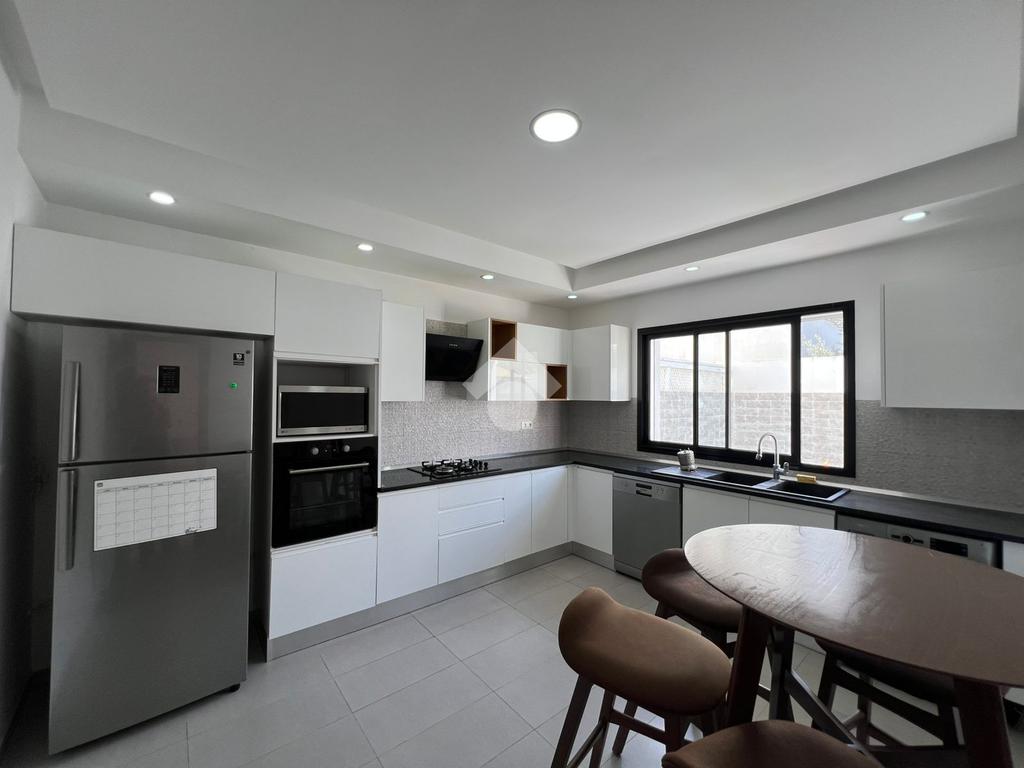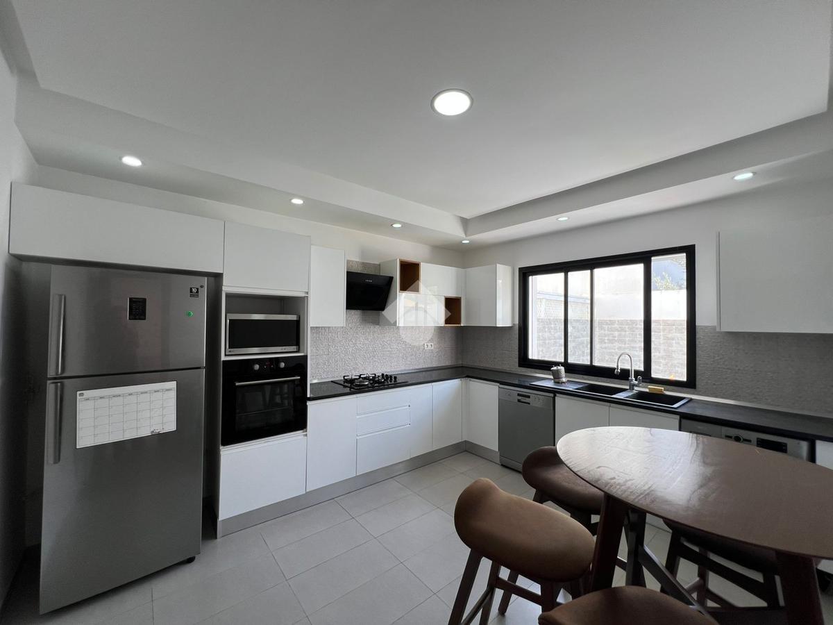 La cuisine est indépendante, entièrement équipée, dispose d’une plaque de cuisson, d’une hotte aspirante, d’un four et d’une machine à laver et d’un lave-vaisselle.