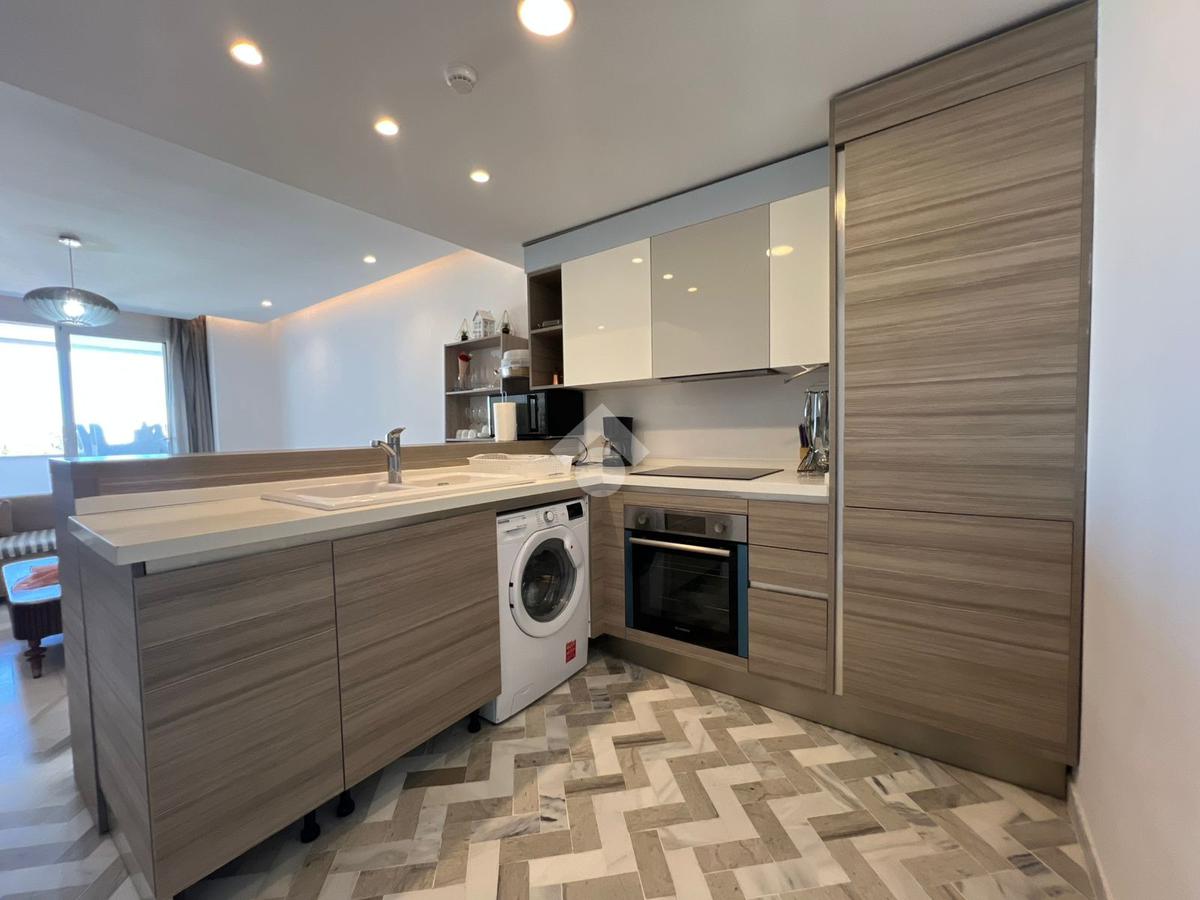 La cuisine est à l’américaine, entièrement équipée : hotte aspirante, four électrique, réfrigérateur et machine à laver.