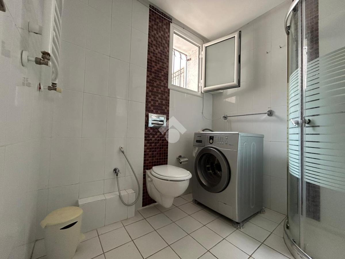 Une salle de douche avec une machine à laver est à disposition.