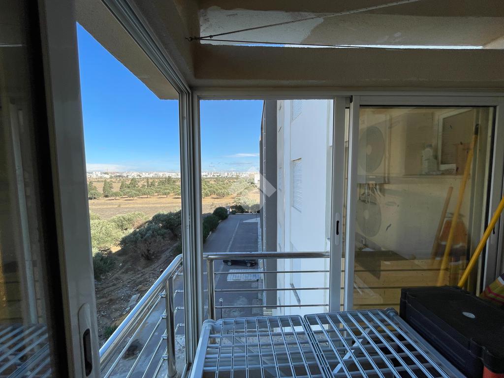 Le salon s’ouvre sur un balcon offrant une vue dégagée.