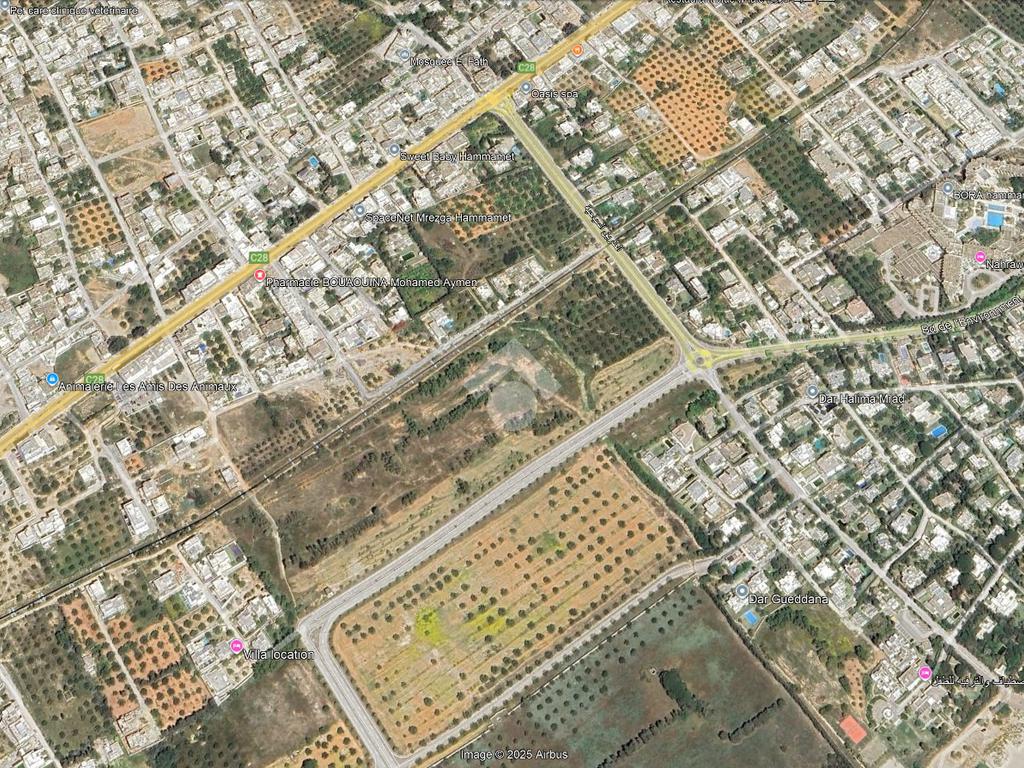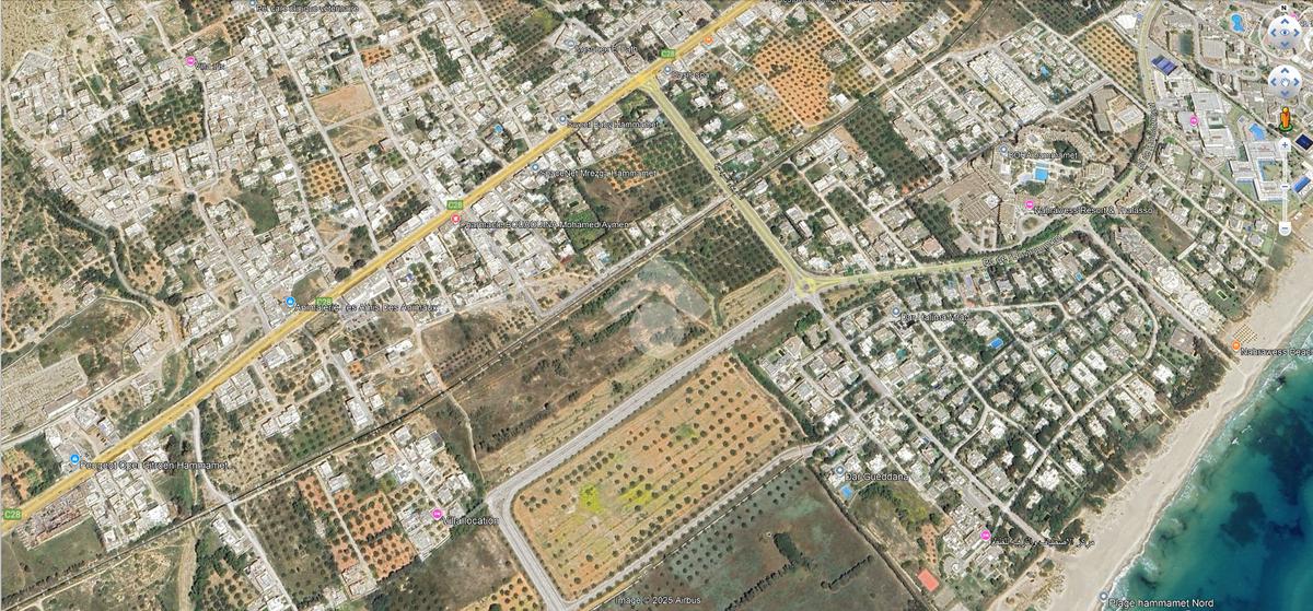 Ce terrain est situé en troisième position par rapport à la route principale, dans un quartier prisé de Hammamet Nord, à proximité du palais présidentiel.