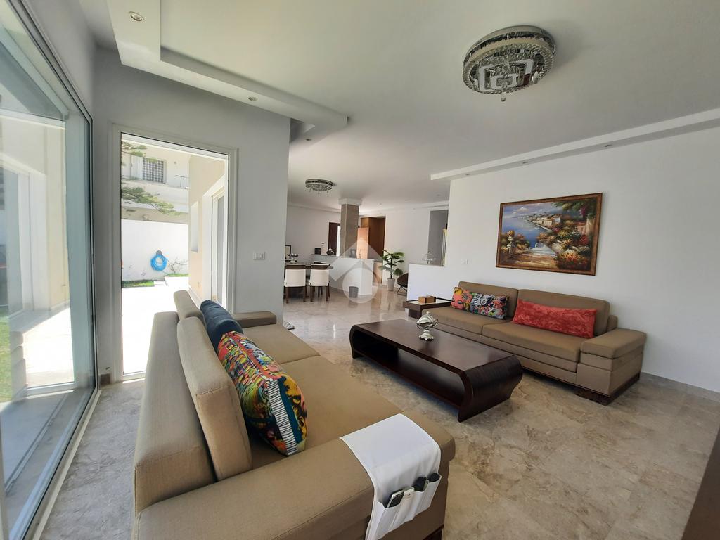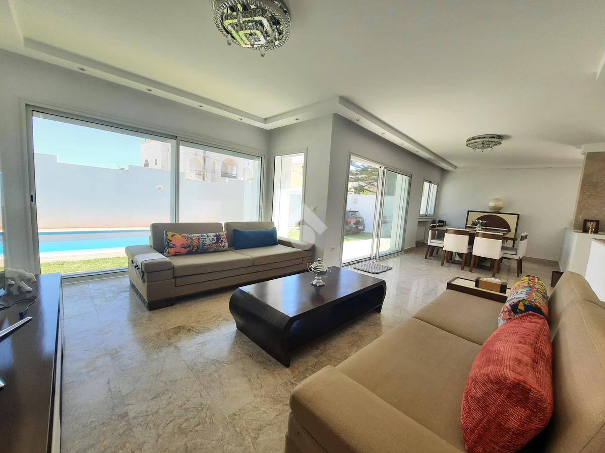 Cette villa est bien située dans un quartier résidentiel composé uniquement de villas. Elle dispose d’un grand jardin, d’une piscine.
