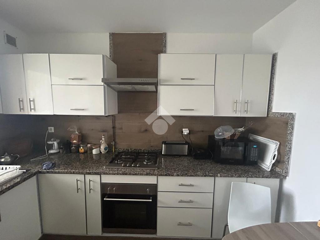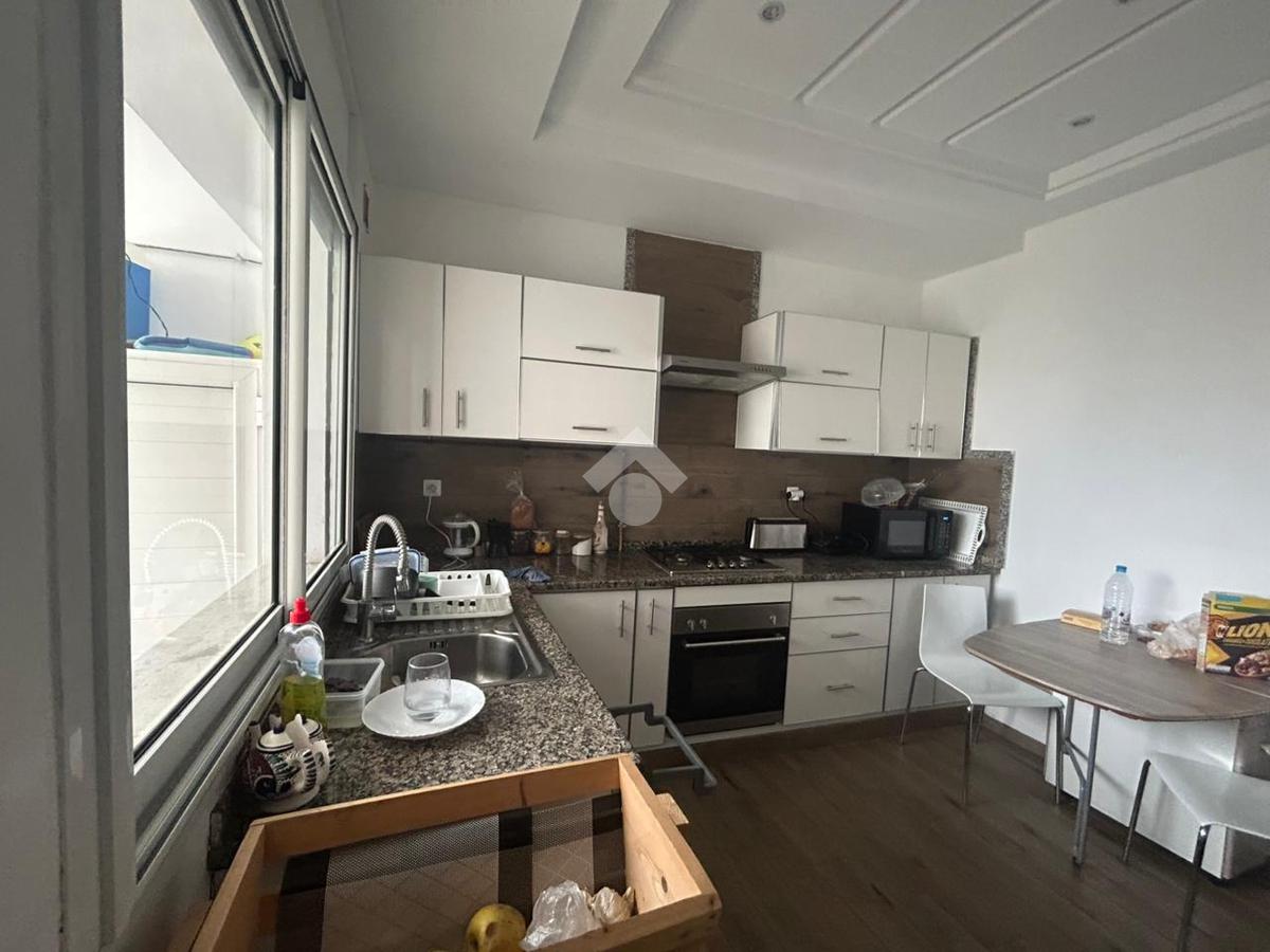 La cuisine est indépendante, équipée d’une plaque de cuisson, d’une hotte aspirante, d’un four et d’un micro-ondes.